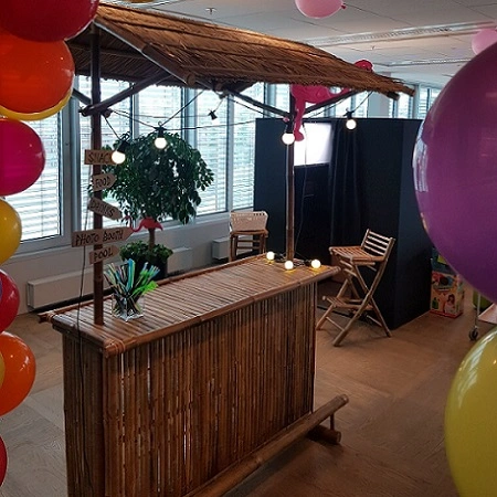 Är det dags för fullmoonparty eller strandtema på kontorsfesten? Då kan ni hyra bambubar här hos oss med pris från 1400:- ex moms. Vi har flera stycken bambubarer och även mycket annat som passar massa olika temafester. Varje bar har två hyllor inuti sig och två bambustolar ingår i hyran. Det går även att komplettera med flera stolar.