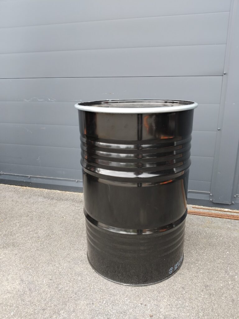 De svarta oljefaten har spännring som kan fästa locken ordentligt.