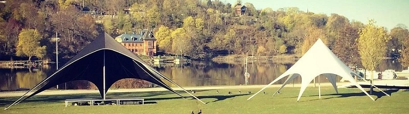 Hyra scentält kan ni göra av oss. Våra scentält även kallade starstage är svarta och drar blickar och uppmärksamhet till sig. De är snygga och stora men tar ändå väldigt liten plats i en transport. Tack vare att tälten är öppna är det också inbjudande och luftigt.