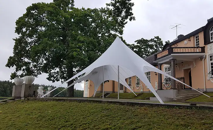 Ett tält när ni vill ha något extra extra. Passa på att hyra StarTwin, ett dubbelmastat stjärntält. Det är ett bra val för mingel och lite större fester. De är snygga och stora men tar ändå väldigt liten plats i en transport. Tack vare att tälten är öppna är det också inbjudande och luftigt. Det ger en skön känsla till festen eller eventet.